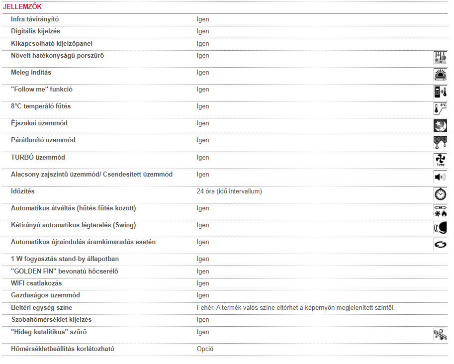 • Kivitel : Oldalfali inverteres klíma